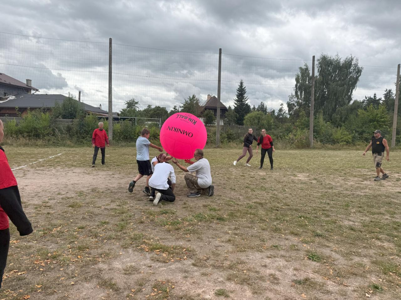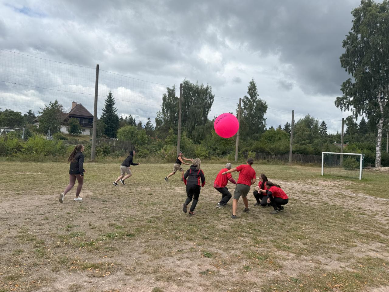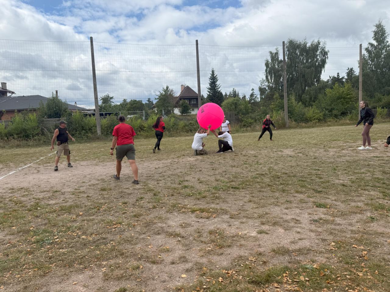 Sportovní den 23. 8. – Kin-Ball, sobota u nás byla ve znamení pohybu a nám se podařilo dát dohromady čtyři týmy, a to dokonce mezinárodní. Večerní hudba se z důvodu počasí přesunula do hospody.