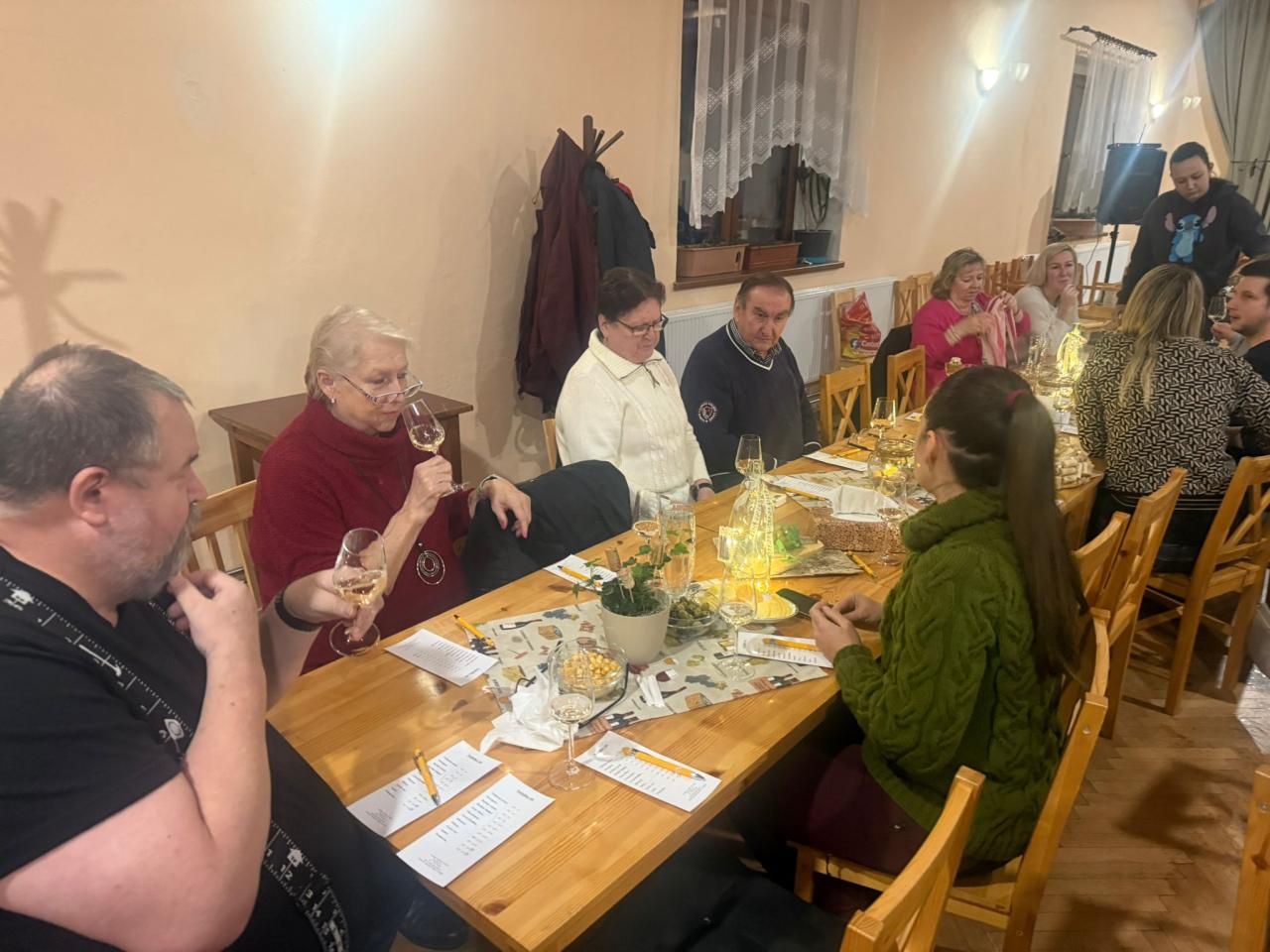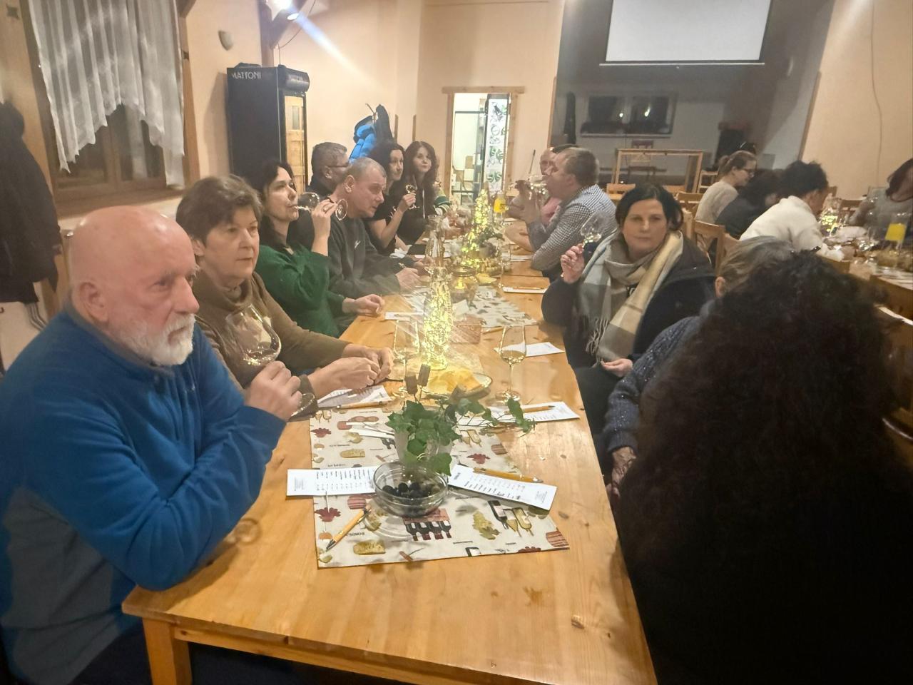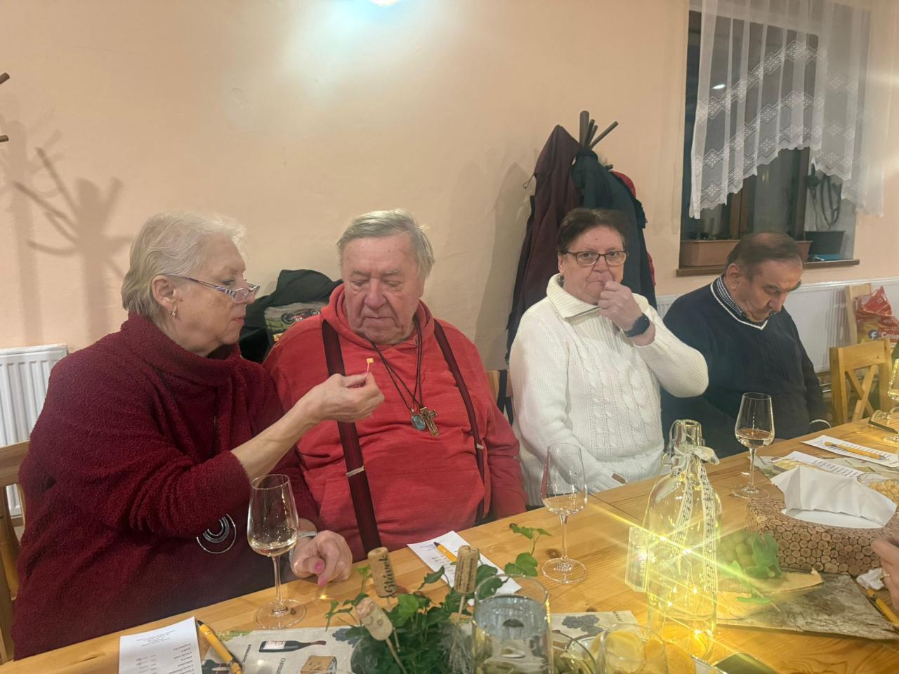 Na ochutnávce vín z rodinného vinařství Vydařilý jsme postupně okoštovali 14 skvělých vzorků. Po oficiální části následovalo pohodové sousedské posezení, kde už se někteří (lehce ovínění) výborně bavili. O skvělou atmosféru se postarala i naše kapela RAJC,která to celé krásně doprovodila.