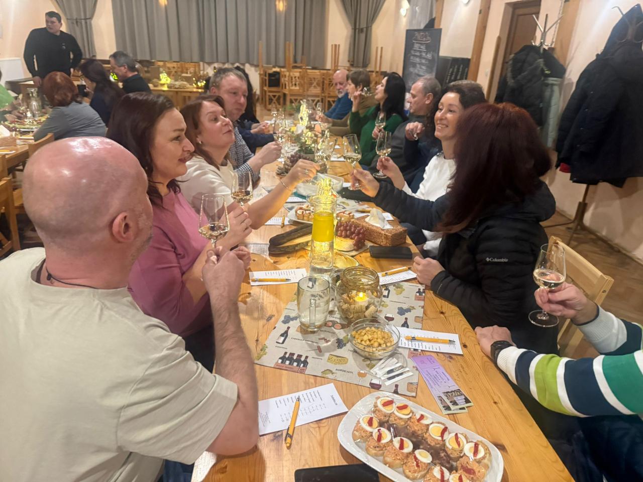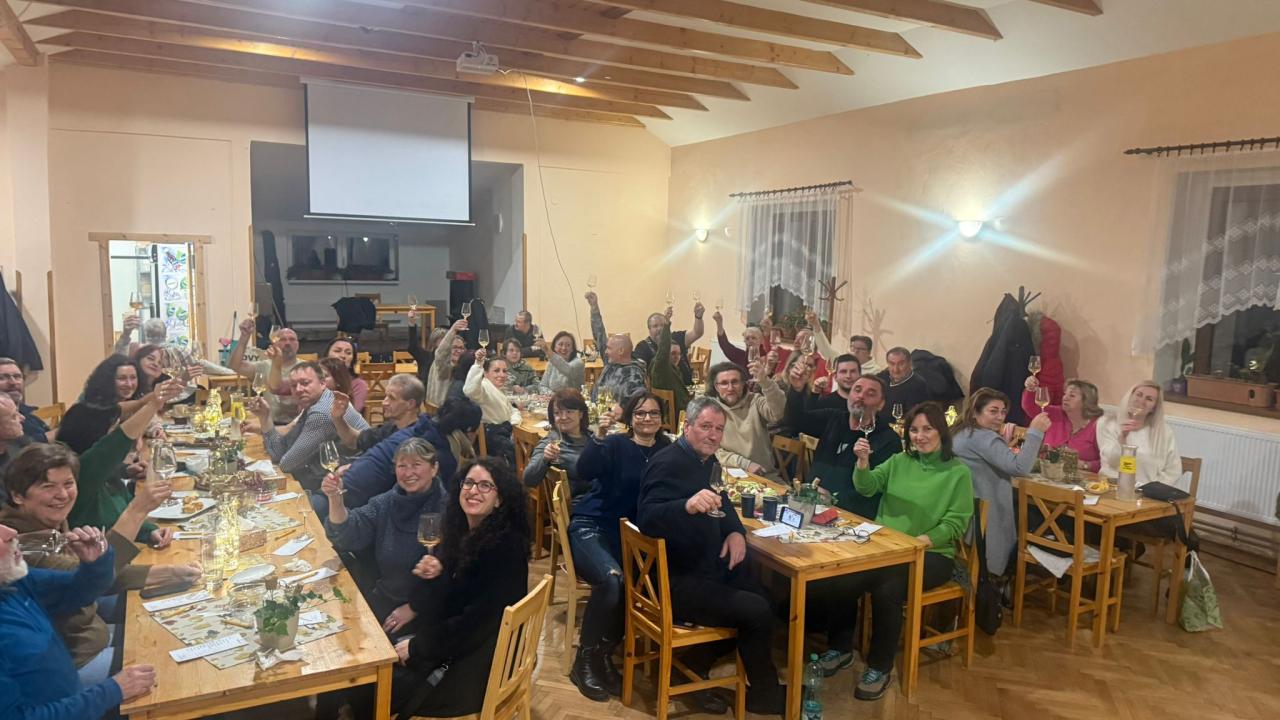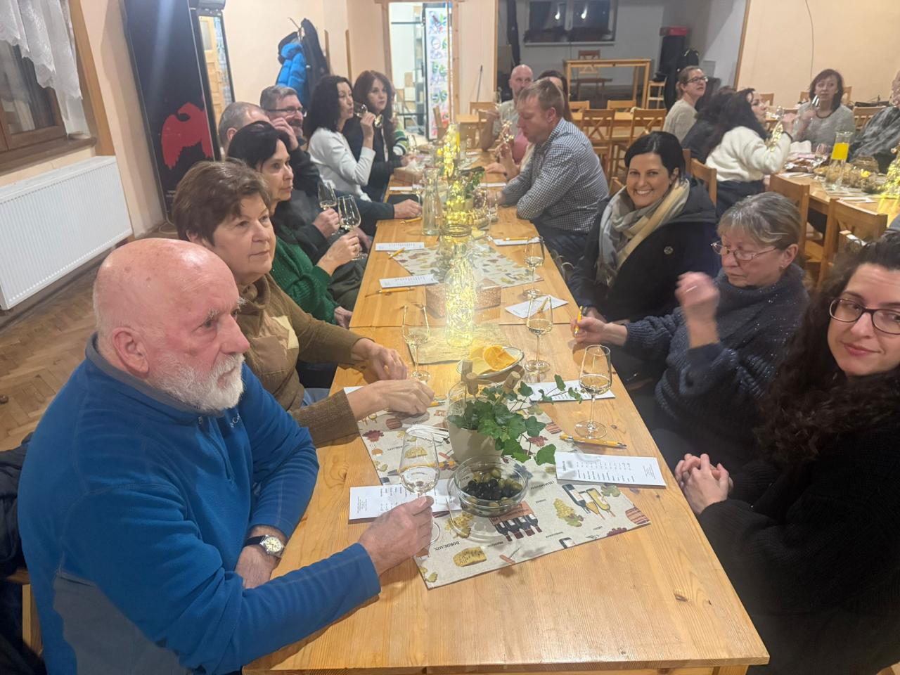Na ochutnávce vín z rodinného vinařství Vydařilý jsme postupně okoštovali 14 skvělých vzorků. Po oficiální části následovalo pohodové sousedské posezení, kde už se někteří (lehce ovínění) výborně bavili. O skvělou atmosféru se postarala i naše kapela RAJC,která to celé krásně doprovodila.